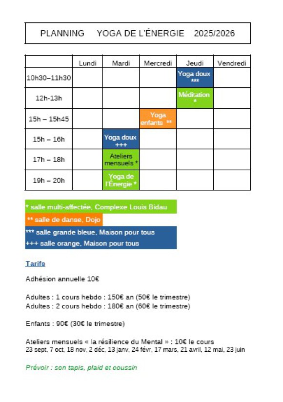Les mardis soir de 19h à 20h, salle multi-affectée , Complexe Louis Bidau. - reste 2 places !
