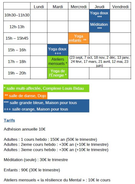 Tarif : 1 cours 150€ à l'année / 2 cours 180€ à l'année + adhésion 10€